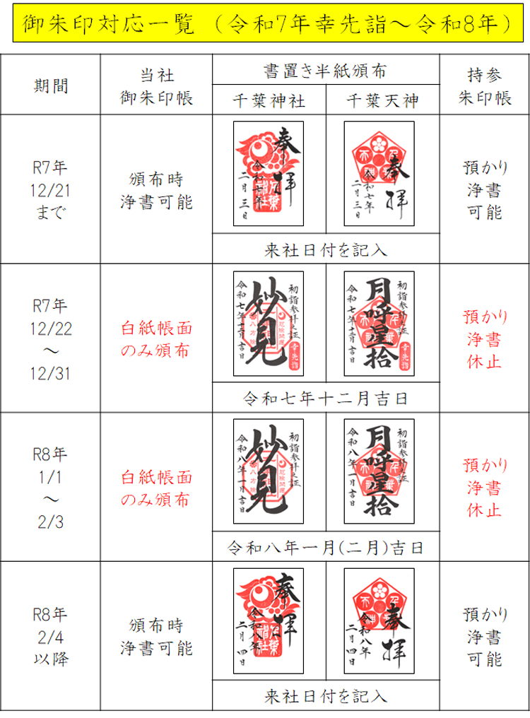 時期に応じて御朱印対応が変化します。下表一覧をご確認の上、ご来社願います。